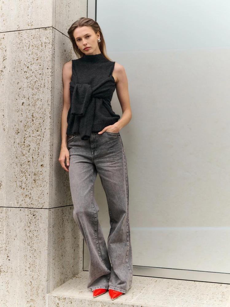 • Weich gestrickter Stehkragenpullover mit Schulteröffnungen